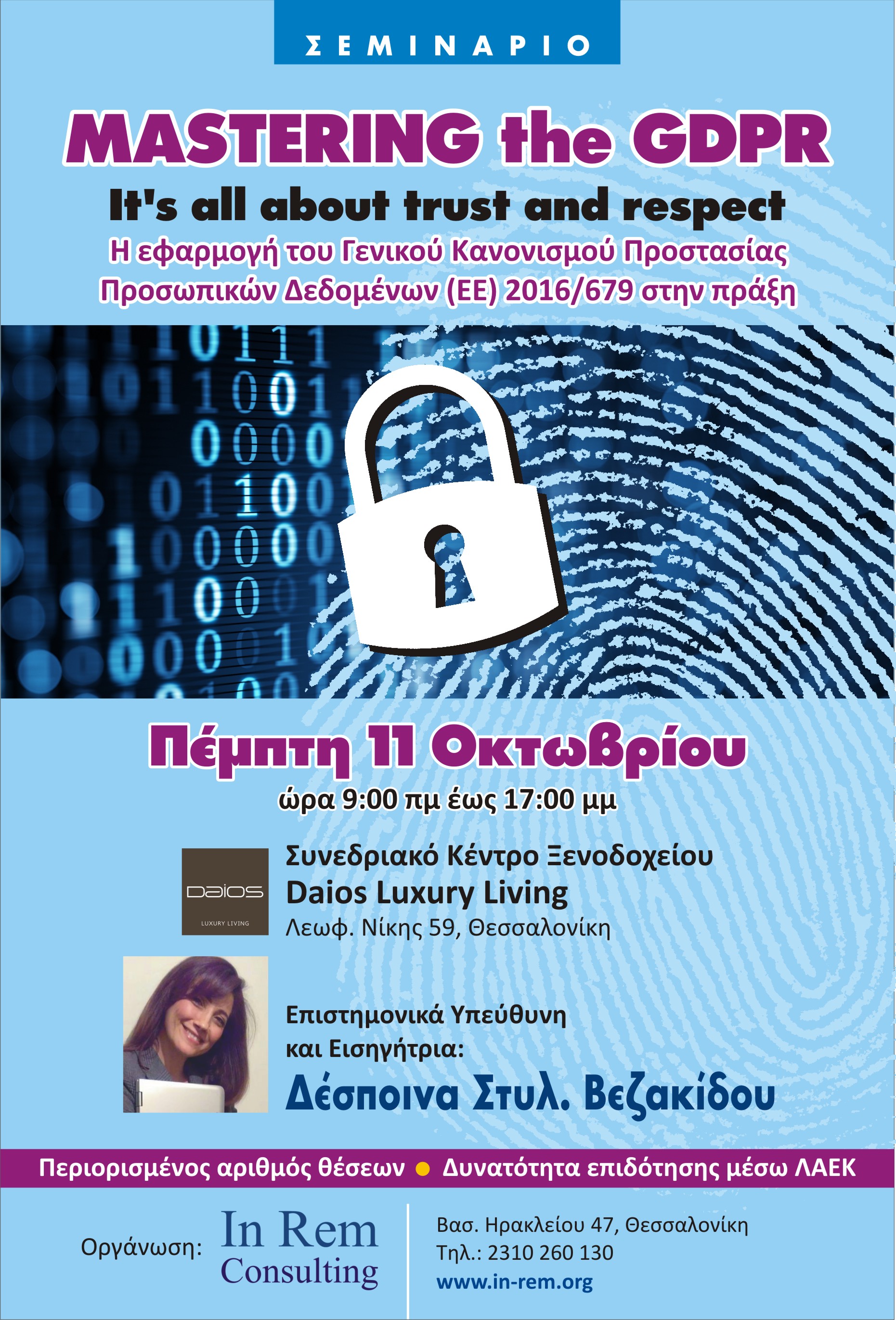 Σεμινάριο διάρκειας 8 διδακτικών ωρών στον Γενικό Κανονισμό Προστασίας Προσωπικών Δεδομένων (ΕΕ) 2016/679